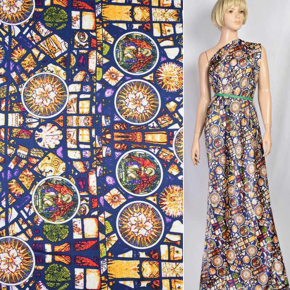 Шовк японський стрейч синій в різнокольорові вітражі, ш.150 купить в розницу и оптом
