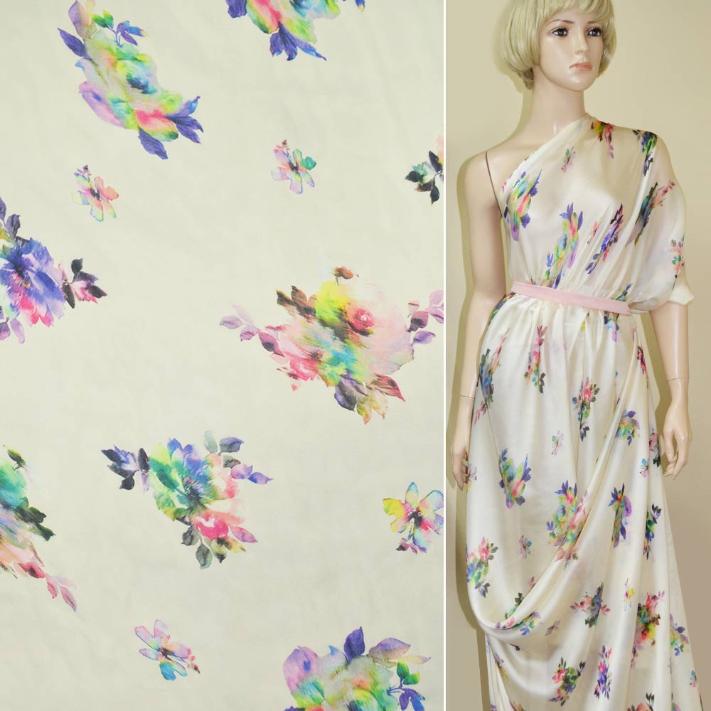 Шовк японський світло-пшеничний з фіолетово-зеленими кольорами (принт) ш.150 купить в розницу и оптом