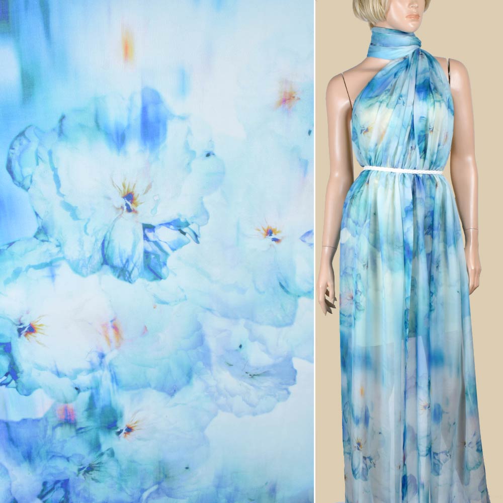 Шовк блідо-блакитний з синіми квітами ш.137 купить в розницу и оптом