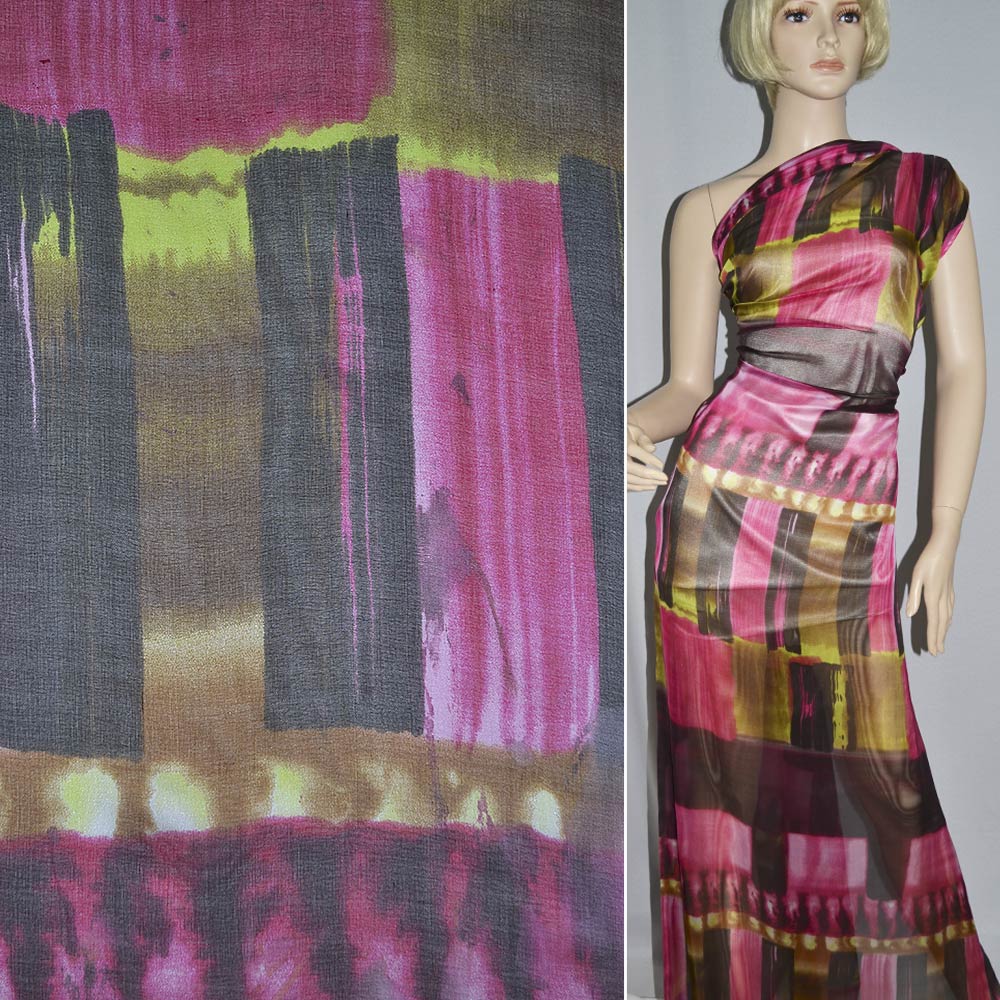 Шовк вишнево-фіолетовий з салатовим прямокутниками ш.134. Склад тканини: Шовк-100. Щільність тканини 31 г/м.кв. Країна виробник: Німеччина. Натуральний шовк - гладка, приємна на дотик, пластична тканина з м'яким блиском. Матеріал не викликає алергії, має високу гігроскопічність, буде комфортний у носінні в будь-яку пору року. Натуральний шовк не електризується, не прилипає до шкіри, не накопичує статичну напругу. Шовкові речі зносостійкі та тривалий час зберігатимуть свій первісний вигляд завдяки міцності плетіння нитки. Шовк відмінно поєднується практично з усіма видами тканини. З шовку шиють одяг, постільна білизна, оббивка для меблів, гардини, взуття.Дякуємо за ваш вибір.