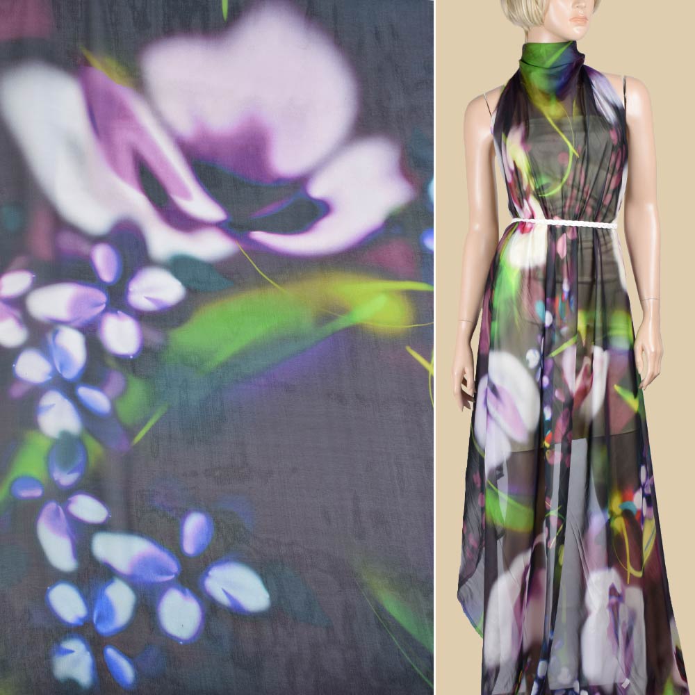 Шовк зелений темний з фіолетовими, лимонними плямами ш.140 купить в розницу и оптом