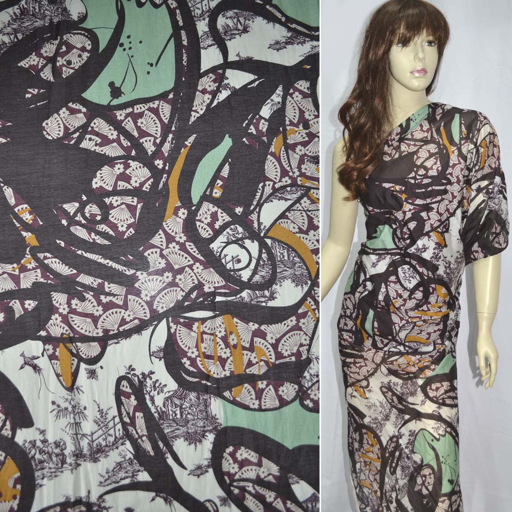 Шовк коричнево-білий з бордово-зеленим абстрактним малюнком ш.137 купить в розницу и оптом