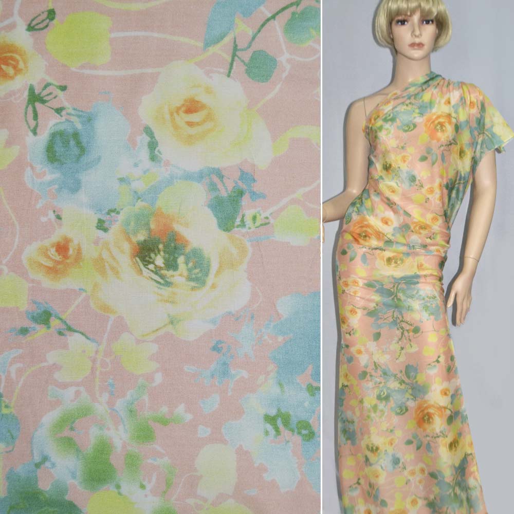 Шовк лимонний з жовто-помаранчевими трояндами ш.137 купить в розницу и оптом