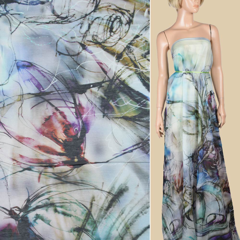 Шовк молочно-сірий з зелено-чорним абстрактним малюнком ш.137 купить в розницу и оптом