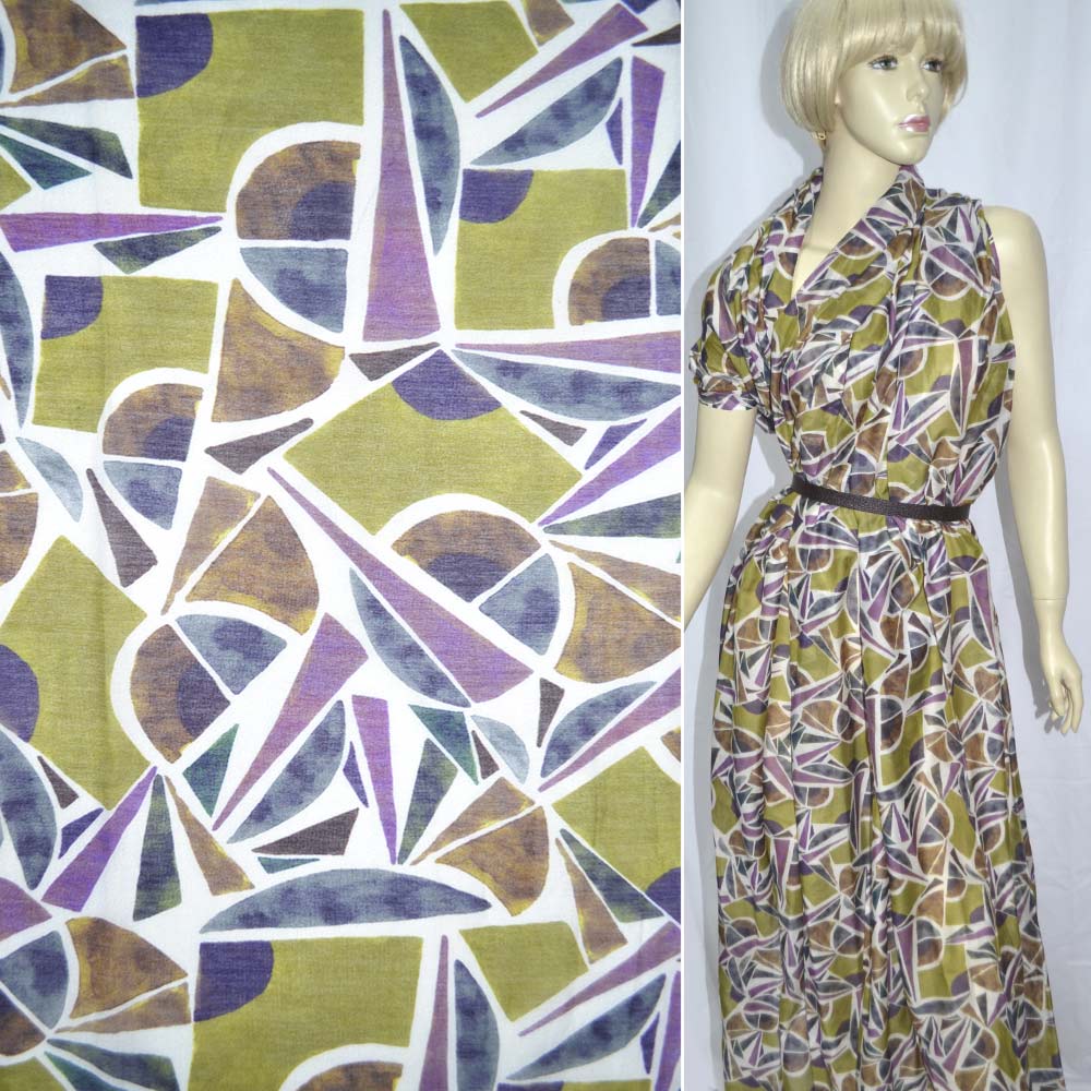 Шовк молочний з зелено-фіолетовим геометричним малюнком ш.137 купить в розницу и оптом