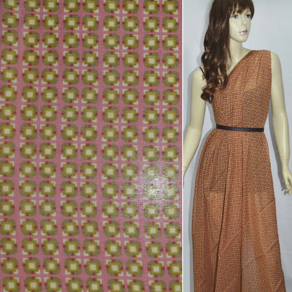 Шовк рожевий з гірчичним квадратами ш.137. Склад тканини: Бавовна-73, Шовк-27. Щільність тканини 37 г/м.кв. Країна виробник: Німеччина. На дотик шовк нагадує прохолодну воду. Бездоганна гладкість, блиск, міцність полотна. Матеріал ніжно покриває шкіру, підкреслює природні лінії фігури. В інтер'єрі дозволяє створити ошатні акценти, атмосферу свята та наліт аристократизму. Позитивні якості шовку це висока зносостійкість і міцність, збереження естетичного вигляду, гігроскопічність завдяки бавовні в складці, формостійкість - не сідає при правильному догляді і не витягується, добре драпірується. Що важливо, не викликає алергію або подразнення шкіри.Дякуємо за ваш вибір.