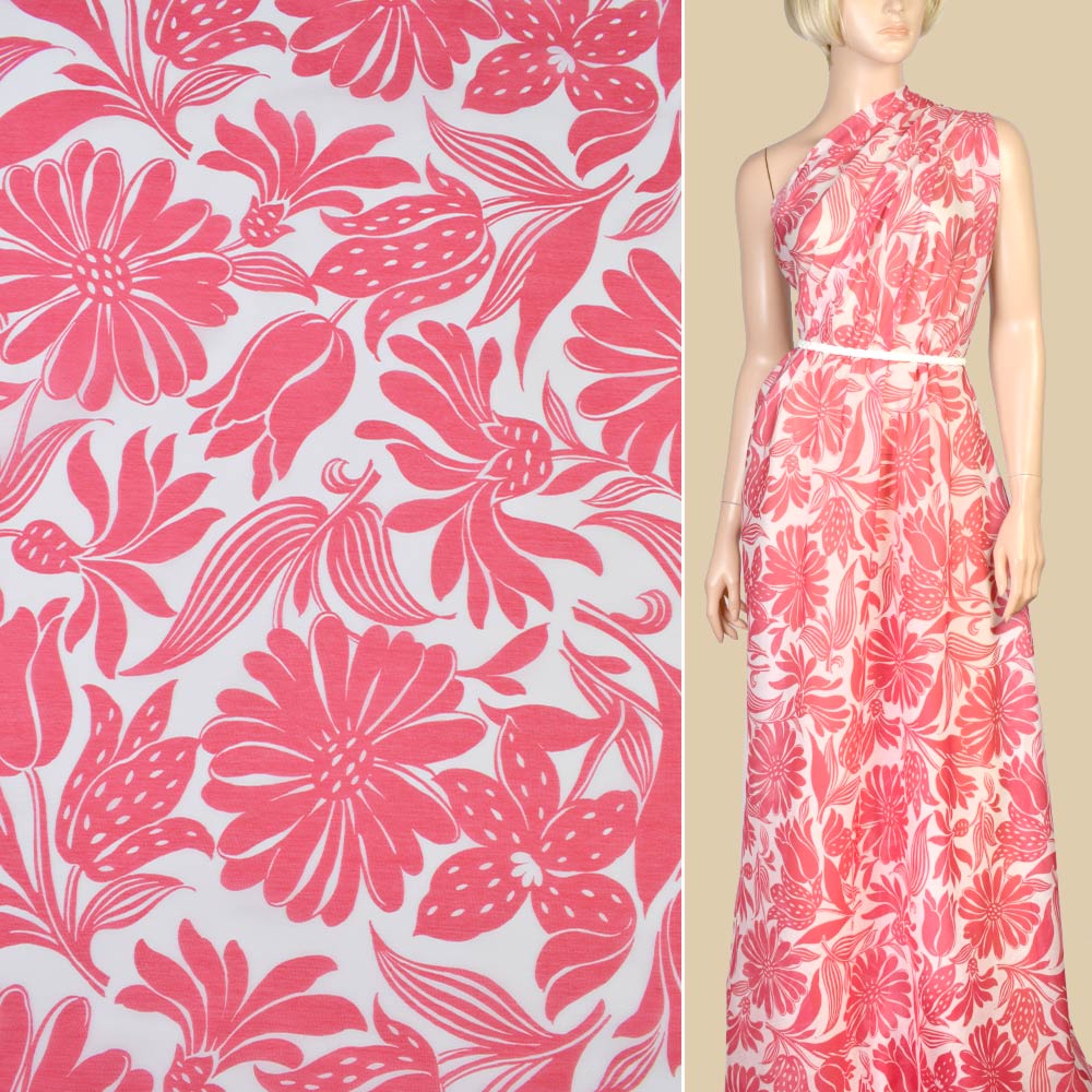 Шовк з бавовною білий в малинові ромашки, ш.140 купить в розницу и оптом