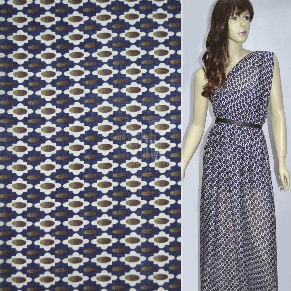 Шовк синій в біло-коричневі овали ш.137 купить в розницу и оптом
