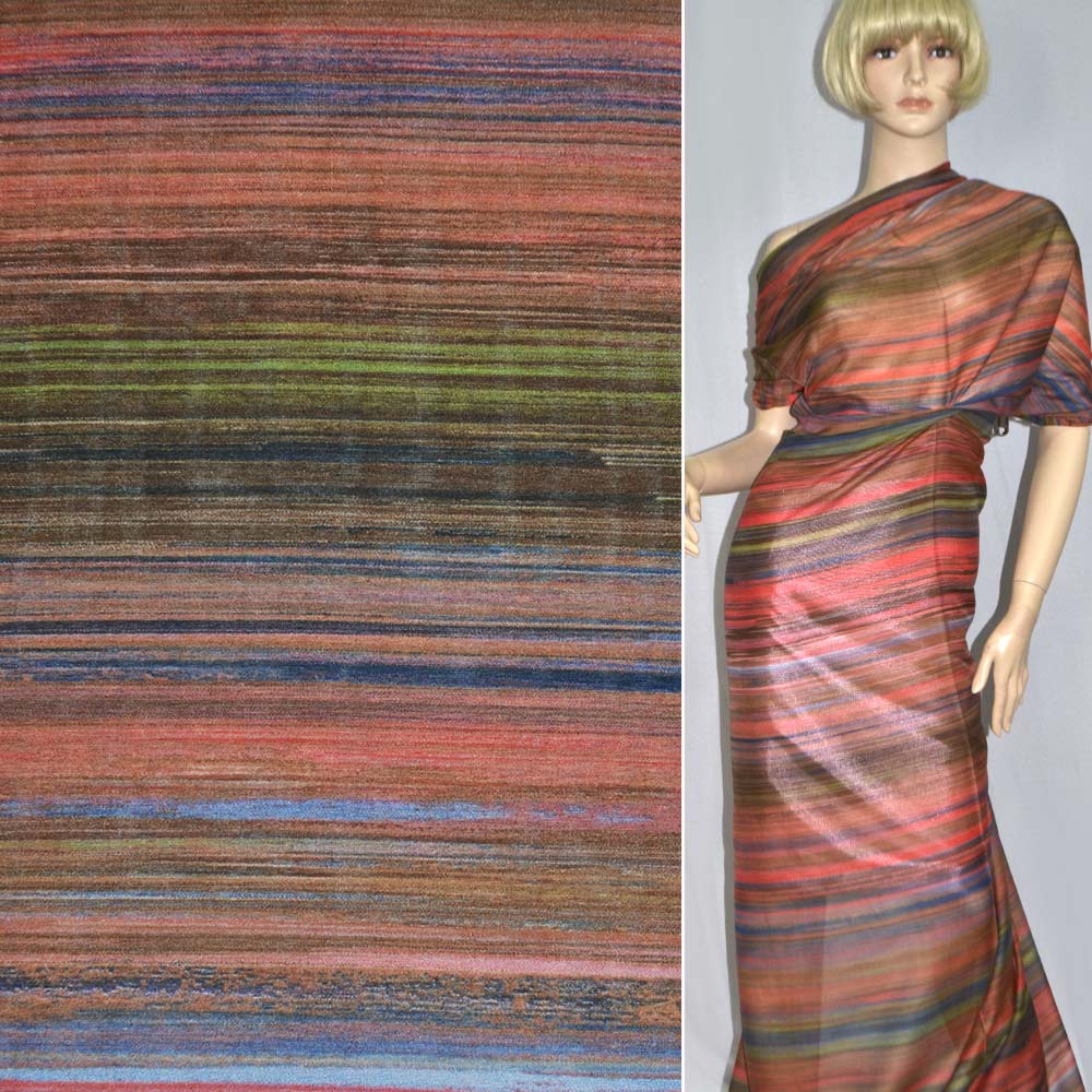 Шовк в коричневі, червоні, зелені смуги ш.137 купить в розницу и оптом