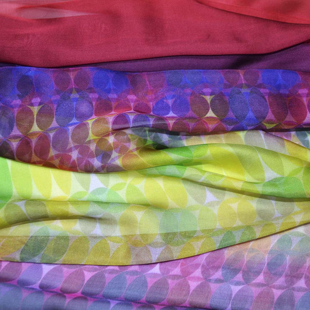 Шовк купон оранжево червоний в геометричний малюнок ш.140 купить в розницу и оптом