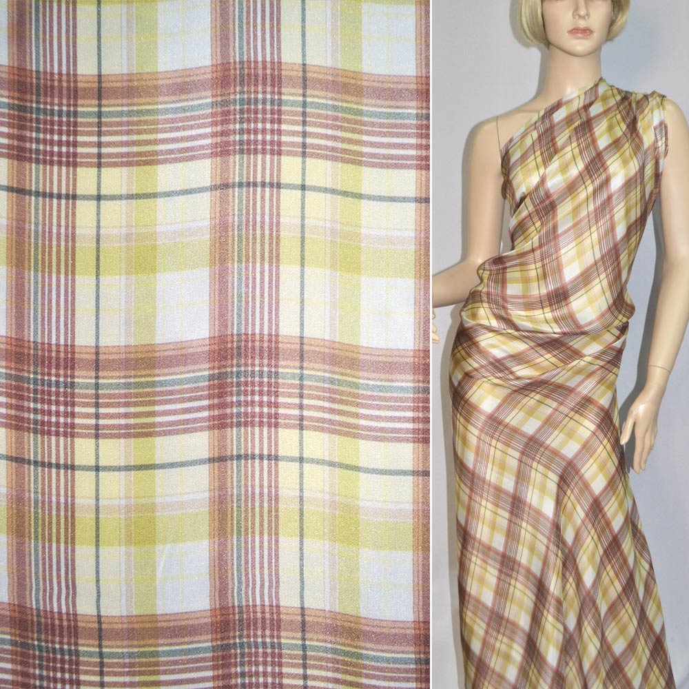 Шовк оливково-жовтий в коричневу клітину ш.135 купить в розницу и оптом