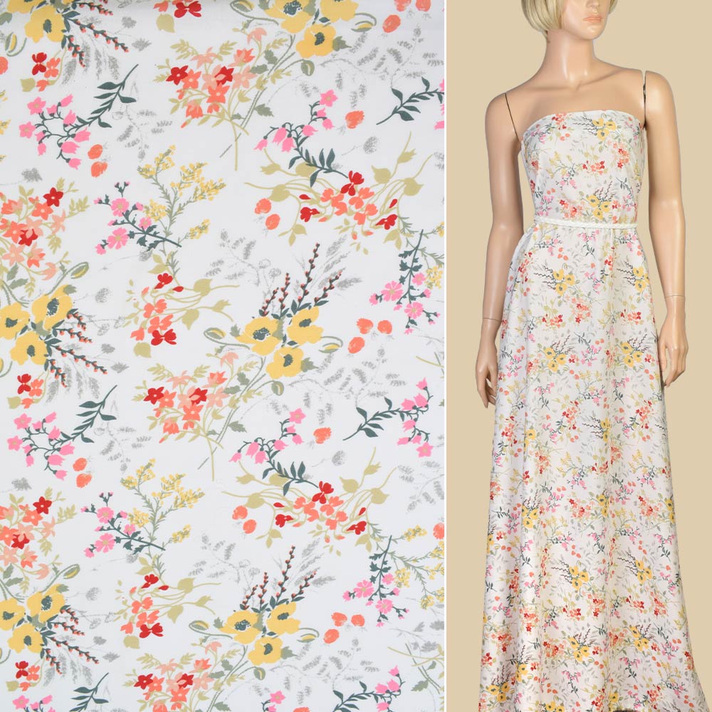 Шовк з віскозою білий в жовто-рожеві квіти ш.142 купить в розницу и оптом