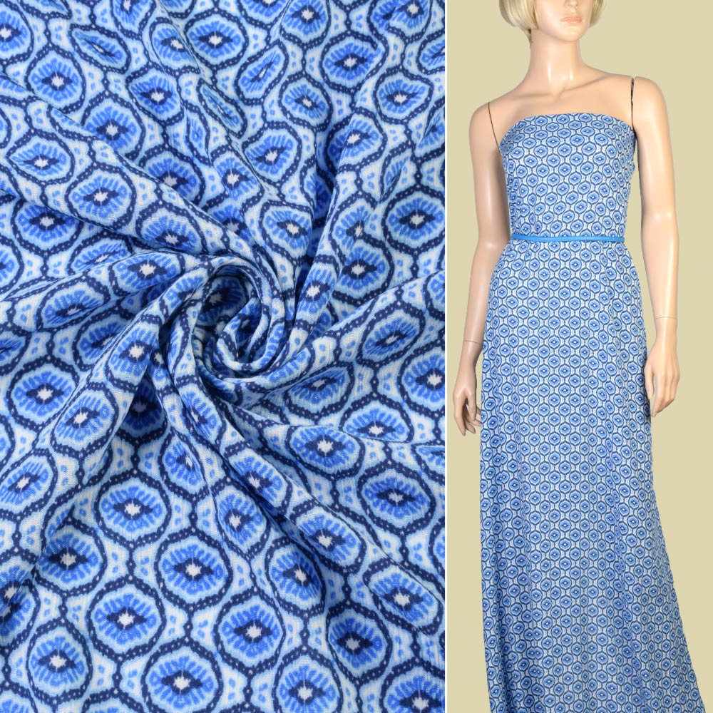 Шовк з віскозою в синьо блакитні візерунки ш.150 купить в розницу и оптом