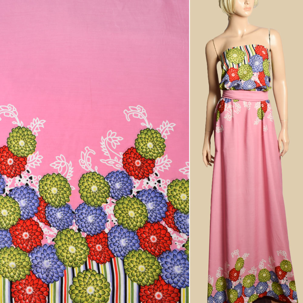 Штапель рожевий, бузкові, салатові, червоні квіти, 2ст.купон, ш.143 купить в розницу и оптом