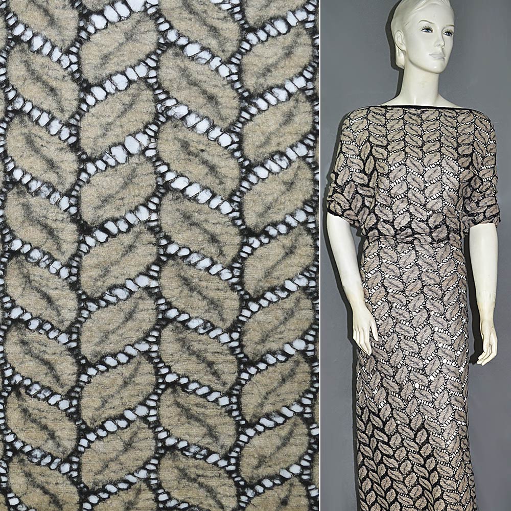 Трикотаж ажурний чорний з бежевими листям ш.150 купить в розницу и оптом