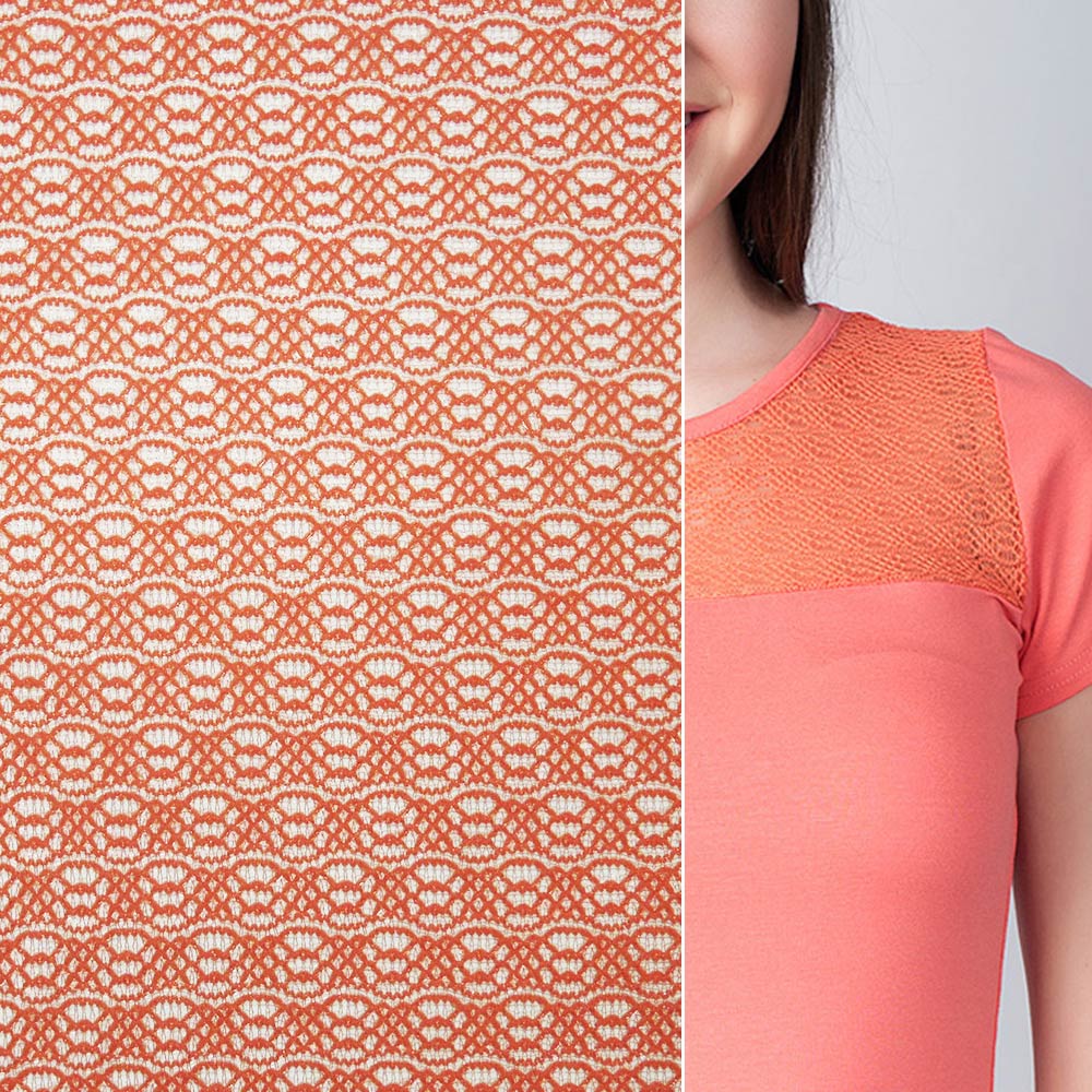 Трикотажне полотно ажурне коралове ш.160. Склад тканини: Поліамід-50, Поліестер-47, Еластан-3. Щільність тканини 100 г/м.кв. Країна виробник: Південна Корея. Ажурний трикотаж - це тонка мереживна тканина із плетінням у вигляді сітчастого малюнка. М'який, приємний на дотик матеріал, легкий. При носінні практично не меніться, не вимагає спеціального догляду. Відмінно підійде для пошиття суконь, легких кофтин, блуз, кардиганів.Дякуємо за ваш вибір.