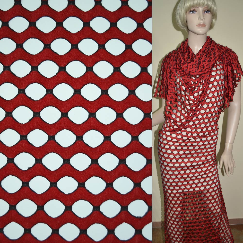 Трикотаж червоний хвилі з овальними дірочками ш.160 купить в розницу и оптом