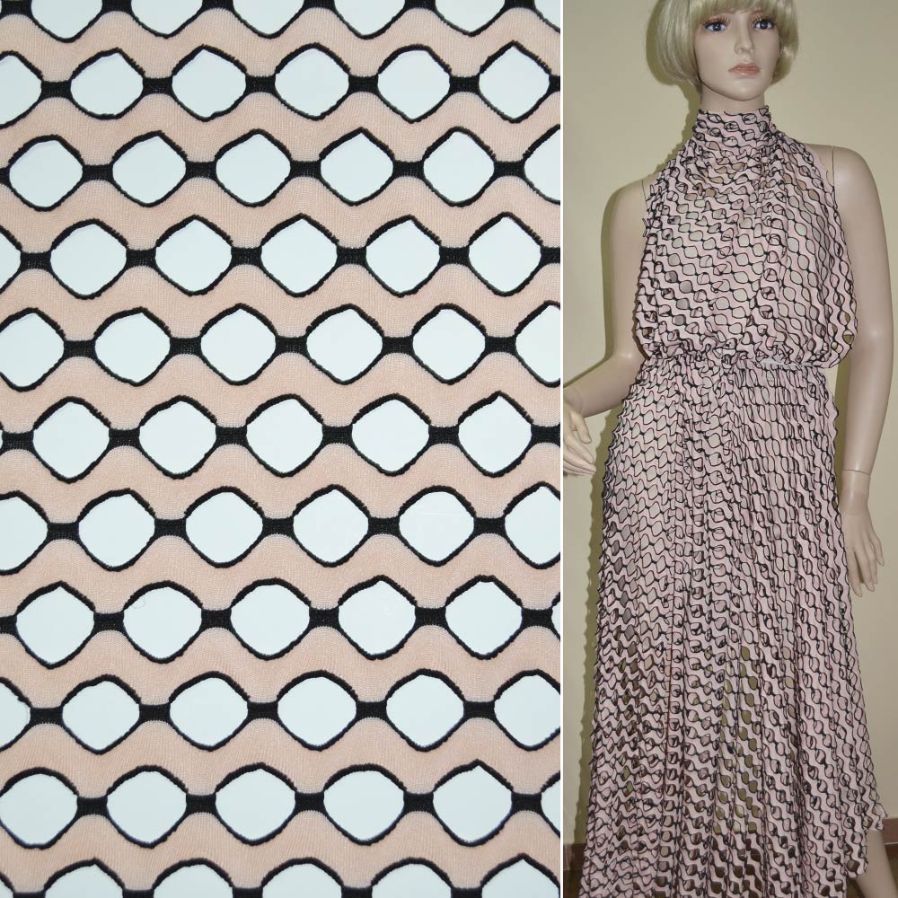Трикотаж персиковий хвилі з овальними дірочками ш.160. Склад тканини: Поліестер-100. Щільність тканини 108 г/м.кв. Країна виробник: Південна Корея. Трикотаж – це м'яка щільна матерія, не прозора. Приємна на дотик, комфортна в носінні. Завдяки вмісту синтетичних матерій, матеріал більш зносостійкий та надовго зберігає свій первісний вигляд. Тканина відрізняється своєю приємною текстурою, гарною розтяжністю, практично не здається. Трикотаж досить простий у догляді. Використовується для пошиття суконь, спортивних костюмів, легких жакетів, поло, футболок та багато іншого.Дякуємо за ваш вибір.
