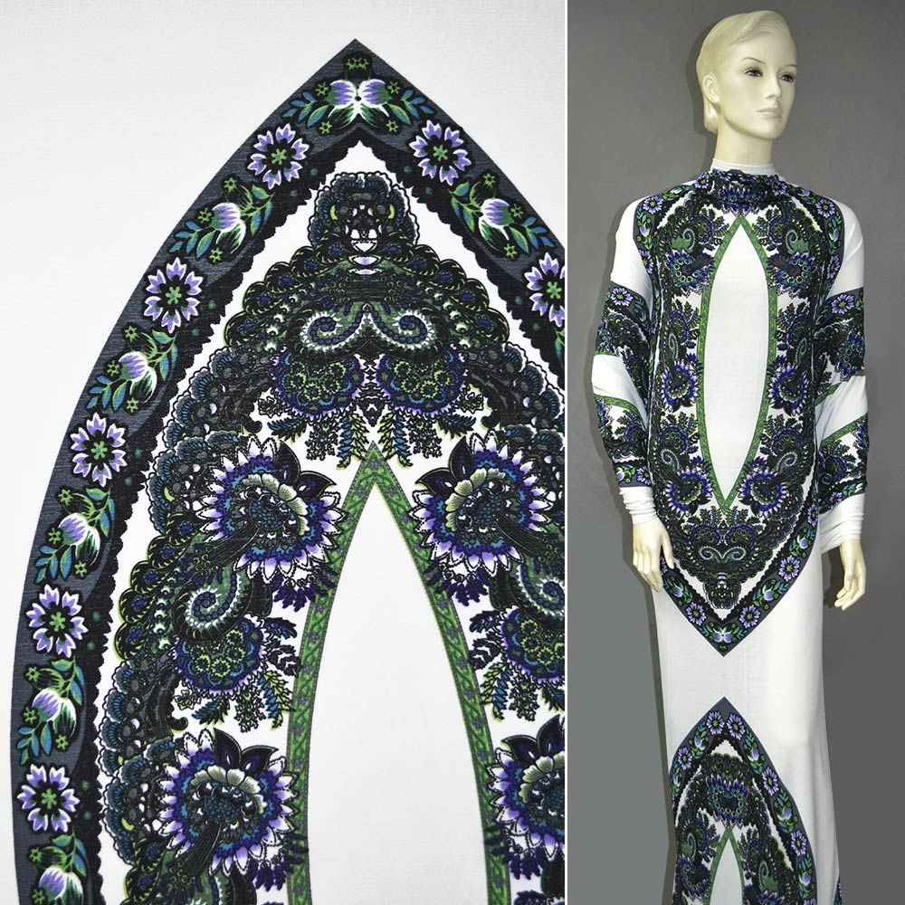 Трикотаж структурні штрихи молочний в квітковий орнамент смуги зелені ш.160. Склад тканини: Ацетат-30, Поліамід-30, Поліестер-35, Еластан-5. Щільність тканини 179 г/м.кв. Країна виробник: Південна Корея. Трикотаж – це м'яка щільна матерія, не прозора. Приємна на дотик, комфортна в носінні. Завдяки вмісту синтетичних матерій, матеріал більш зносостійкий та надовго зберігає свій первісний вигляд. Тканина відрізняється своєю приємною текстурою, гарною розтяжністю, практично не помається, добре драпірується. Трикотаж досить простий у догляді. Використовується для пошиття суконь, спортивних костюмів, легких жакетів, поло, футболок та багато іншого.Дякуємо за ваш вибір.