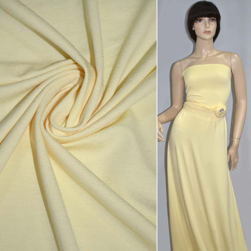 Трикотаж віскозний стрейч блідо-жовтий однотонний ш.147 купить в розницу и оптом
