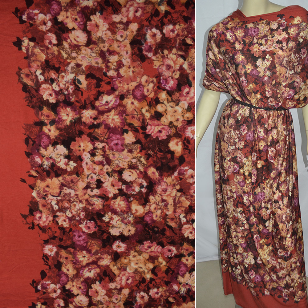 Трикотаж віскозний червоний в бежево-бузкові квіти ш.158. Склад тканини: Віскоза-100. Щільність тканини 138 г/м.кв. Країна виробник: Німеччина. Трикотаж – це м'яка щільна матерія, не прозора. Приємна на дотик, комфортна в носінні. Завдяки вмісту синтетичних матерій, матеріал більш зносостійкий та надовго зберігає свій первісний вигляд. Тканина відрізняється своєю приємною текстурою, гарною розтяжністю, практично не здається. Трикотаж досить простий у догляді. Використовується для пошиття суконь, спортивних костюмів, легких жакетів, поло, футболок та багато іншого.Дякуємо за ваш вибір.