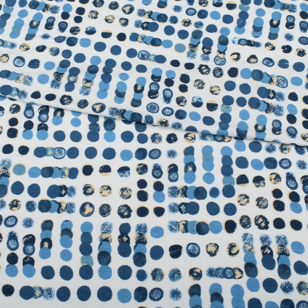 Трикотаж віскозний стрейч білий, синій, темно-блакитний горох, ш.150 купить в розницу и оптом
