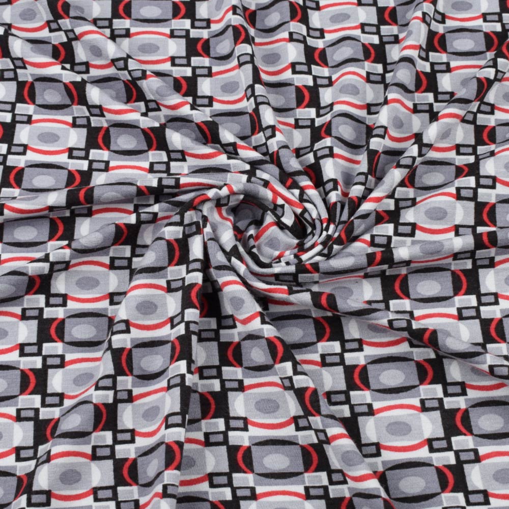 Трикотаж віскозний стрейч білий в чорно-сірі квадрати і червоні овали ш.150 купить в розницу и оптом