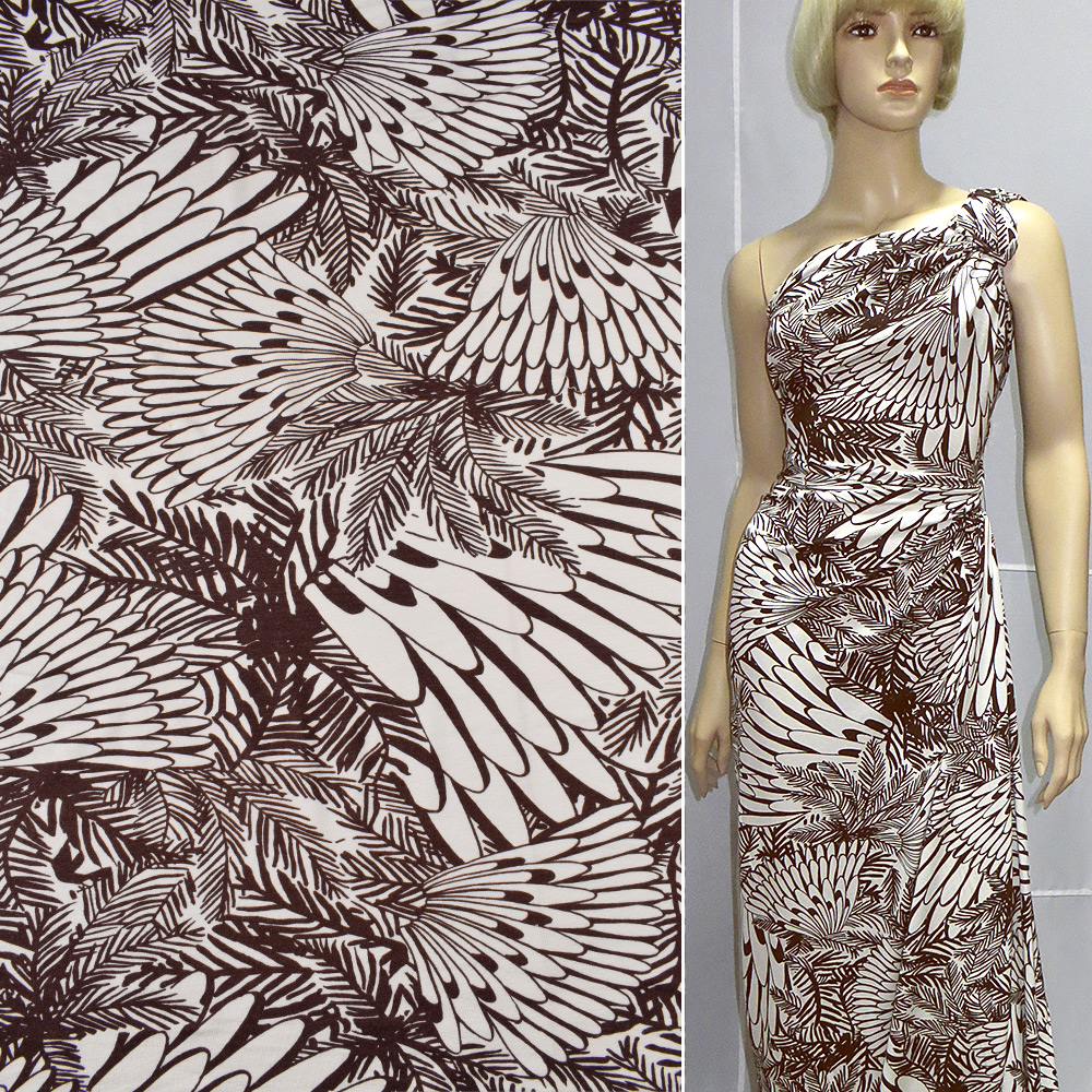 Трикотаж віскозний стрейч білий в темно-коричневу абстракцію купить в розницу и оптом
