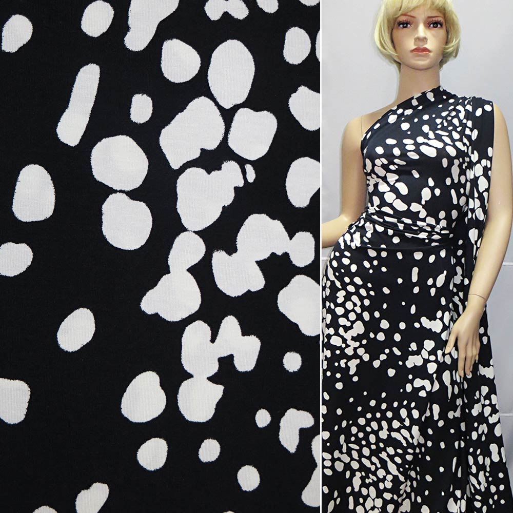 Трикотаж віскозний стрейч чорно-синій з білими колами ш.150 купить в розницу и оптом