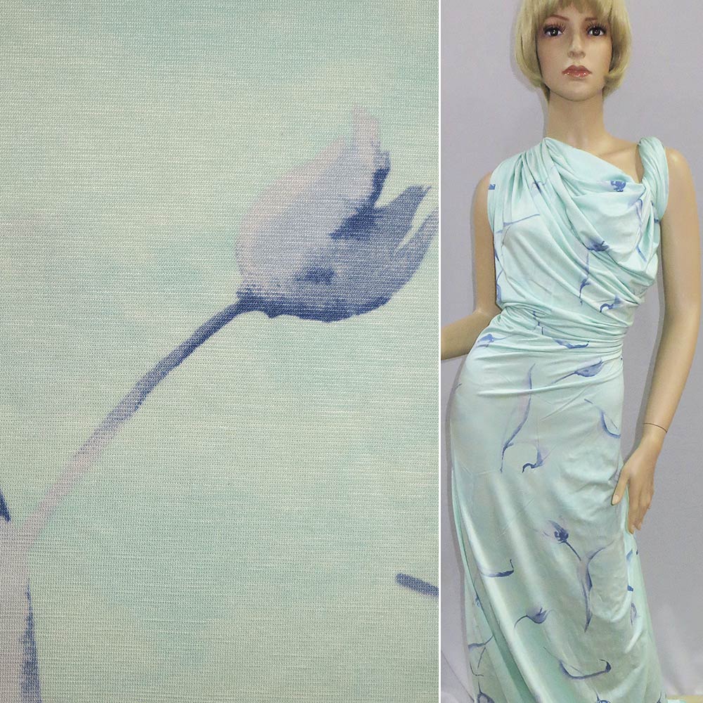 Трикотаж віскозний стрейч з тюльпанами бузковими блакитний ш.138 купить в розницу и оптом