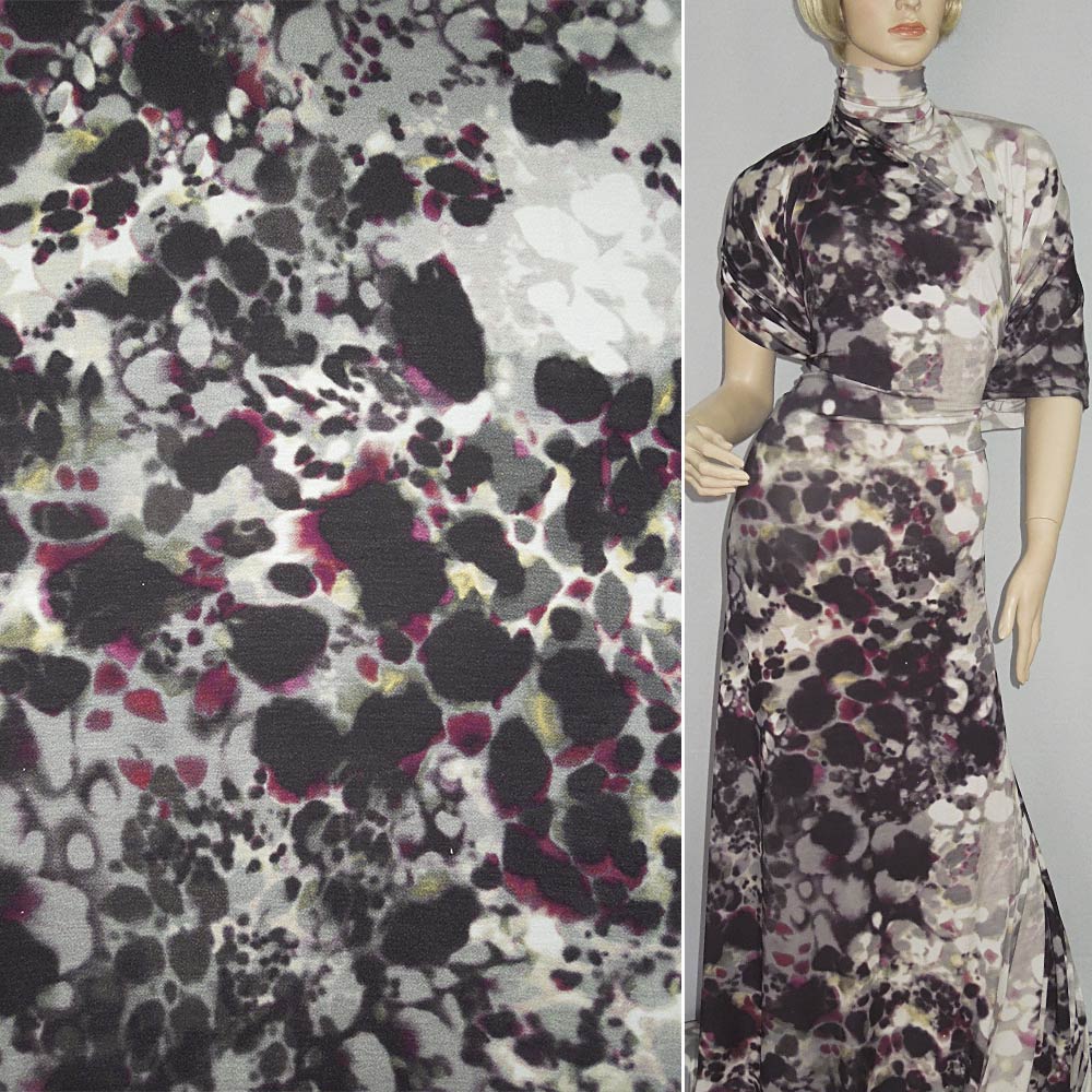 Трикотаж віскозний стрейч сірий світлий в коричнево-бордові камінчики ш.150 купить в розницу и оптом