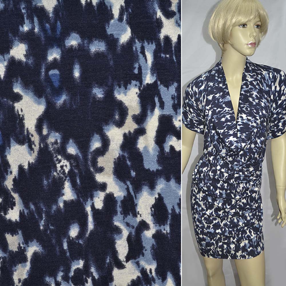 Трикотаж віскозний стрейч синій темний з молочно-сірими плямами ш.149 купить в розницу и оптом