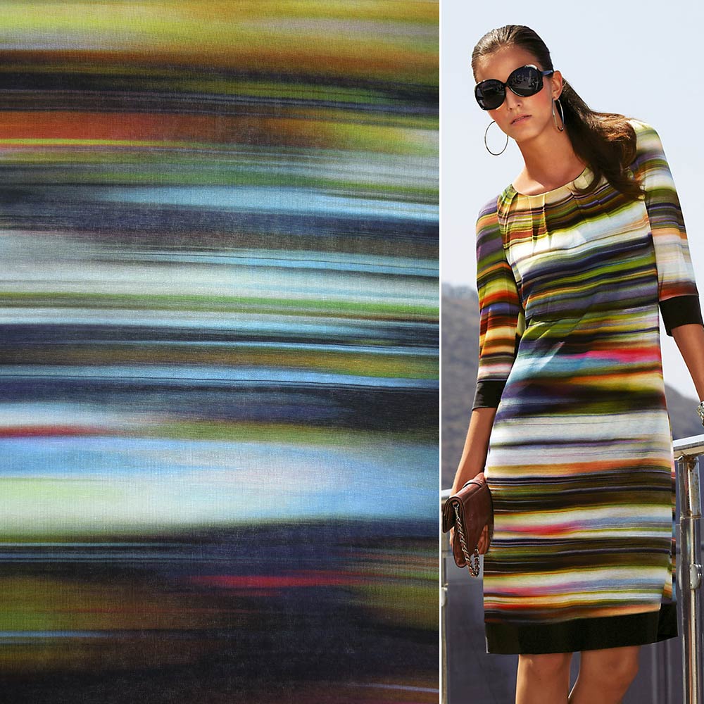 Трикотаж віскозний стрейч в різнокольорові смужки веселка (принт) ш.133. Склад тканини: Віскоза-97, Еластан-3. Щільність тканини 108 г/м.кв. Країна виробник: Німеччина. Трикотаж – це м'яка щільна матерія, не прозора. Приємна на дотик, комфортна в носінні. Завдяки вмісту синтетичних матерій, матеріал більш зносостійкий та надовго зберігає свій первісний вигляд. Тканина відрізняється своєю приємною текстурою, гарною розтяжністю, практично не здається. Трикотаж досить простий у догляді. Використовується для пошиття суконь, спортивних костюмів, легких жакетів, поло, футболок та багато іншого.Дякуємо за ваш вибір.
