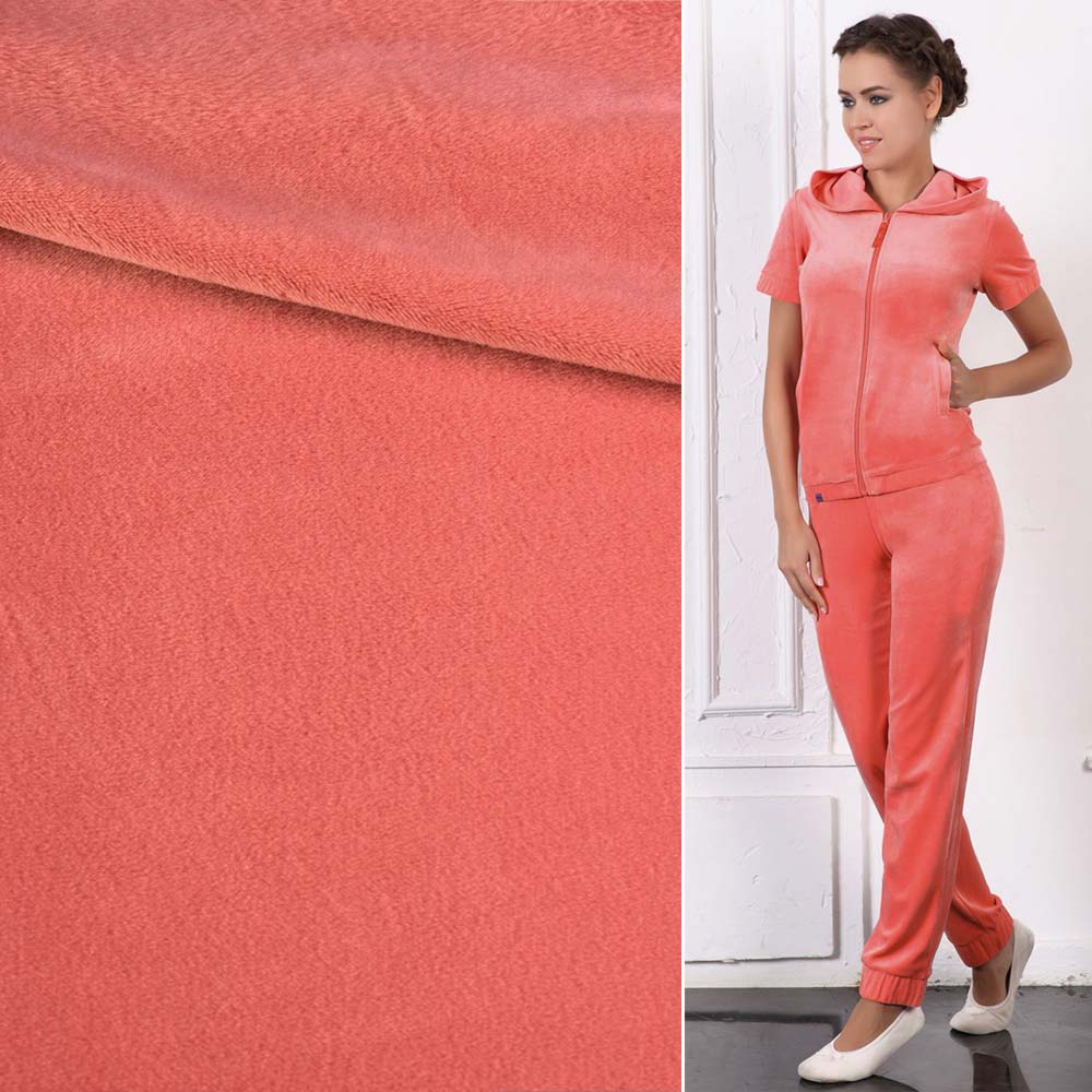 Велюр стрейч спорт персиково-рожевий ш.170 купить в розницу и оптом