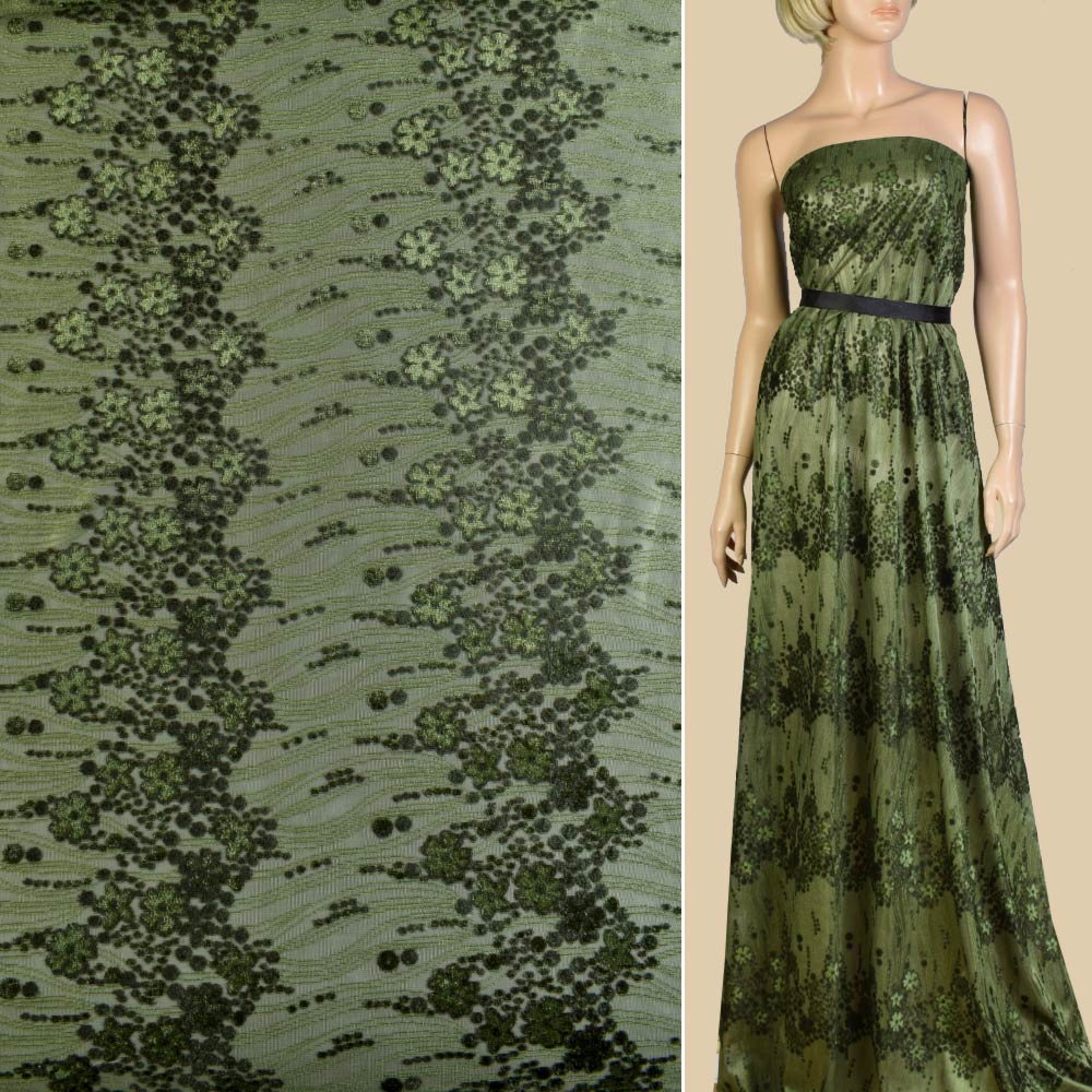 Оксамит на трикотажному шифоні зелений, ш.150 купить в розницу и оптом