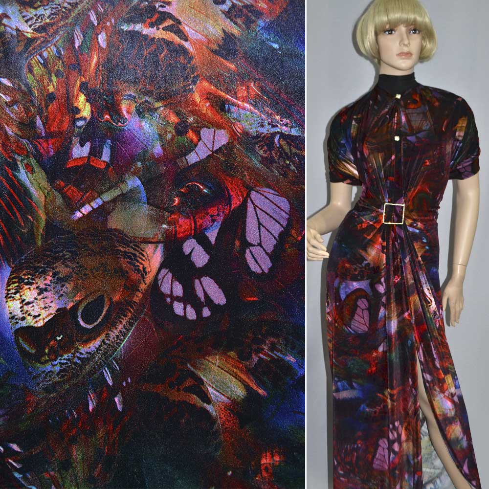 Велюр чорний з червоно помаранчевої абстракцією (принт) ш.162. Склад тканини: Поліестер-95, Еластан-5. Щільність тканини 240 г/м.кв. Країна виробник: Південна Корея. М'який, тактильно приємний матеріал з ворсистою поверхнею, еластичний по качку. Його фактура нагадує мармур, за рахунок спрямування ворсу в дві сторони. Матеріал має безліч переваг. Велюр стійкий до механічних впливів, щільний, має хорошу теплоізоляцію, не меніться і досить практичний як у використанні, так і у догляді. Застосовується для пошиття різних видів одягу: суконь, спідниць, кофт, костюмів, кардиганів, вечірнього вбрання та карнавальних костюмів. Використовується для створення аксесуарів: шапок, чохлів, іграшок, а також у декорі інтер'єру.Дякуємо за ваш вибір.