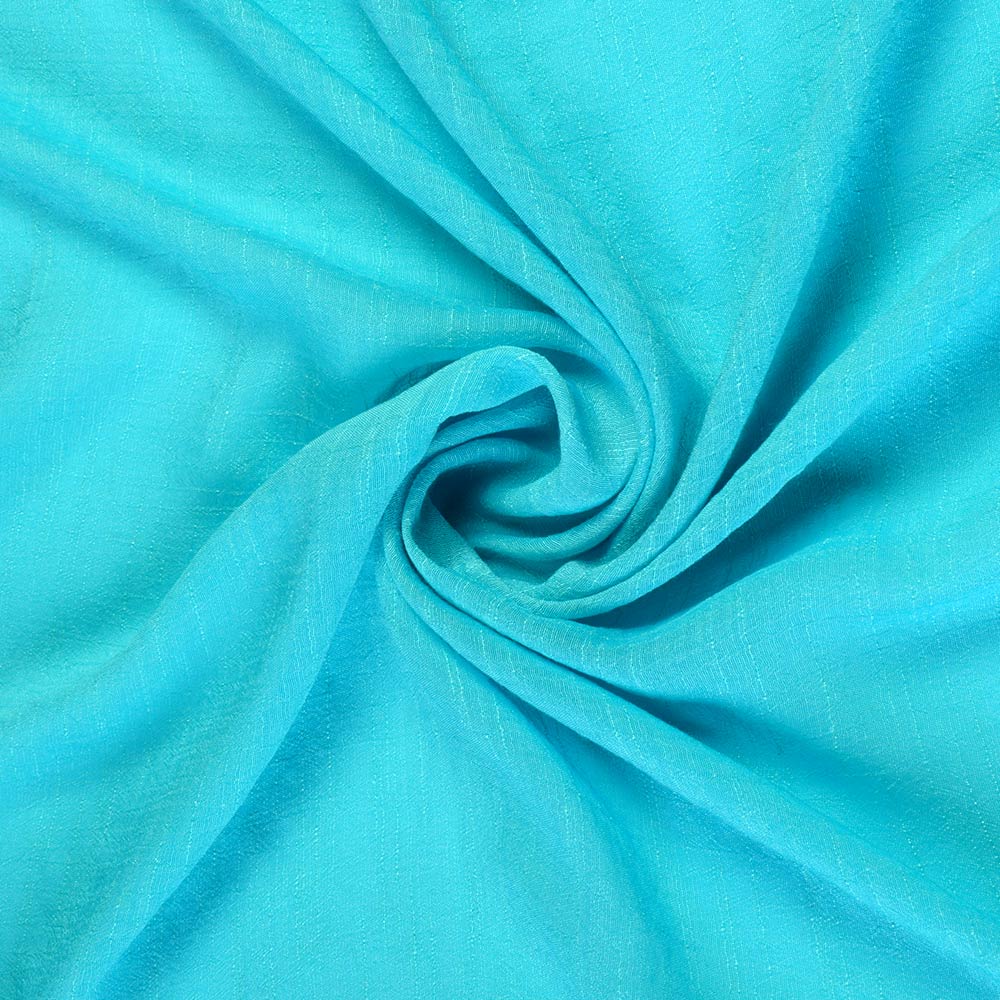 Віскоза жата яскраво блакитна ш.150. Склад тканини: Віскоза-100. Щільність тканини 85 г/м.кв. Країна виробник: Південна Корея. За своєю структурою віскоза дуже нагадує шовк, легше ніж бавовна, а значить, що її доцільніше використовувати при пошитті літнього одягу. Їй не властиве накопичення статичної електрики, тобто при взаємодії з іншими тканинами чи поверхнями вона не електризується. Дане сукно є дуже приємним на дотик, м'яким і добре тягнеться, що дозволяє використовувати його у виробництві дитячого одягу та домашнього текстилю. Матеріал не схильний викликати алергічні реакції та дерматити. Можна використовувати для пошиття дитячого одягу. Віскоза приємна для тіла, сприяє зігріванню взимку та створює комфортну температуру у спеку. Матеріал сприяє вбирання вологи та пропускає повітря. Віскоза може бути абсолютно будь-якого кольору, після прання надовго зберігає привабливий та яскравий колір.Дякуємо за ваш вибір.