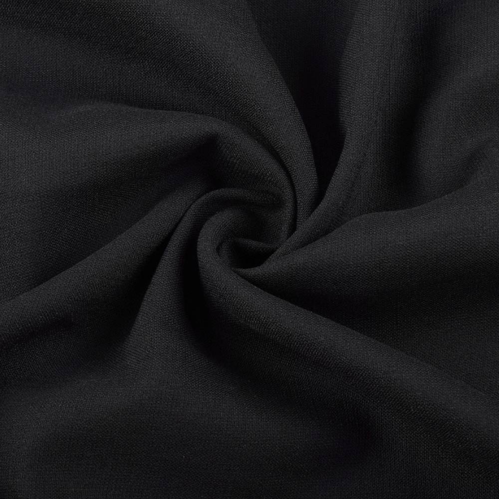 Віскоза стрейч чорна ш.145. Склад тканини: Вискоза-60, Льон-20, Поліестер-17, Еластан-3. Щільність тканини 154 г/м.кв. Країна виробник: Південна Корея. Віскоза дуже м'яка і ковзна, що струмує і легко драпірується. Віскозна тканина має унікальну властивість — вона повністю переймає особливості та якості волокон, з яких вона виготовляється. Доступна у великій кількості кольорів, не линяє, не викликає алергію та екологічна. Завдяки тому, що тканина гарно струмує, драпірується, а віскоза трикотаж ще й тягнеться, вона дуже гарно виглядає на жіночій фігурі. Широко використовується віскоза і для одягу для дому для жінок і дітей - з нього шиються красиві і практичні піжами, халати. Штапельне ж віскозне полотно щільніше, з нього виробляються і теплі предмети одягу - пальто, кардигани, светри та водолазки, шапочки. З такої тканини виготовляються навіть пледи та килимові вироби.Дякуємо за ваш вибір.