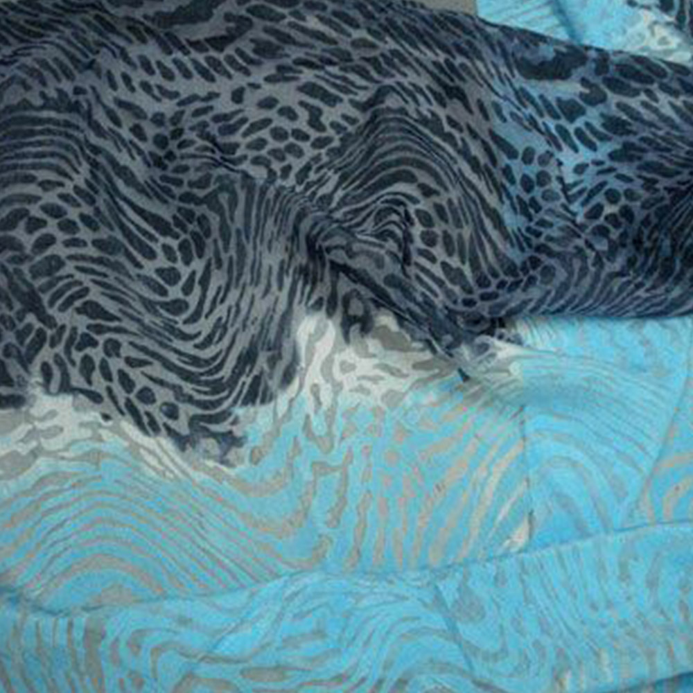 Віскоза костюмна блакитна набивна з темно-синім купоном в абстрактний малюнок, ш.150. Склад тканини: Віскоза-70, Поліамід-30. Щільність тканини 92 г/м.кв. Країна виробник: Німеччина. Віскоза дуже м'яка і ковзна, що струмує і легко драпірується. Віскозна тканина має унікальну властивість — вона повністю переймає особливості та якості волокон, з яких вона виготовляється. Доступна у великій кількості кольорів, не линяє, не викликає алергію та екологічна. Завдяки тому, що тканина гарно струмує, драпірується, а віскоза трикотаж ще й тягнеться, вона дуже гарно виглядає на жіночій фігурі. Широко використовується віскоза і для одягу для дому для жінок і дітей - з нього шиються красиві і практичні піжами, халати. Штапельне ж віскозне полотно щільніше, з нього виробляються і теплі предмети одягу - пальто, кардигани, светри та водолазки, шапочки. З такої тканини виготовляються навіть пледи та килимові вироби.Дякуємо за ваш вибір.