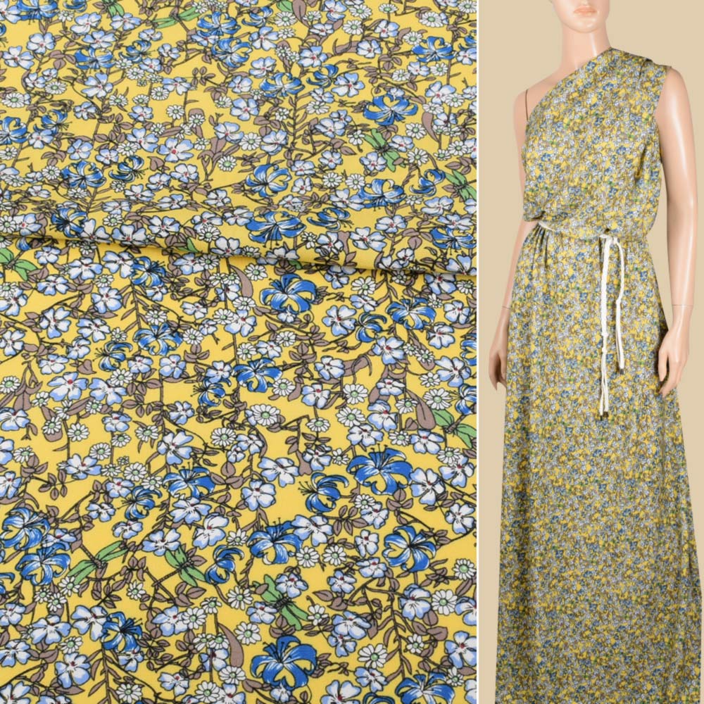 Віскоза жовта, дрібні блакитні, білі квіти, ш.140 купить в розницу и оптом