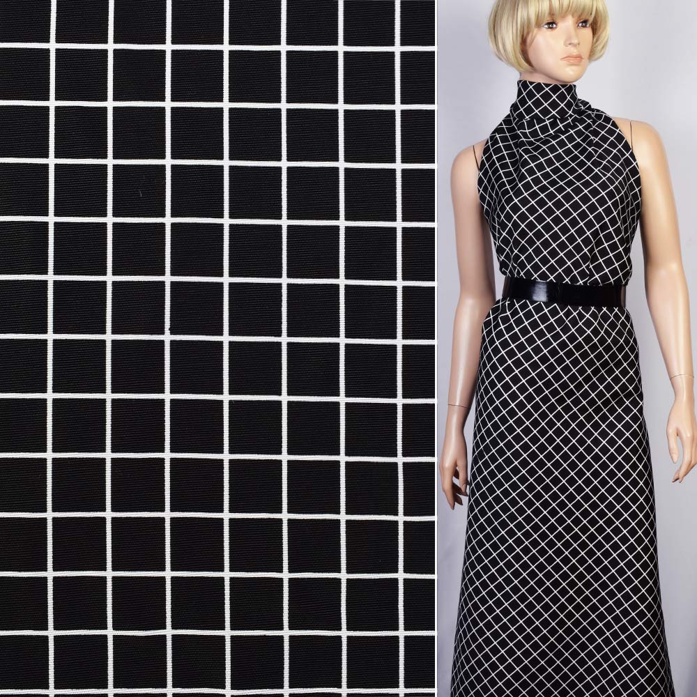 Репс віскозний чорний в білі квадрати (2см) ш.150 купить в розницу и оптом