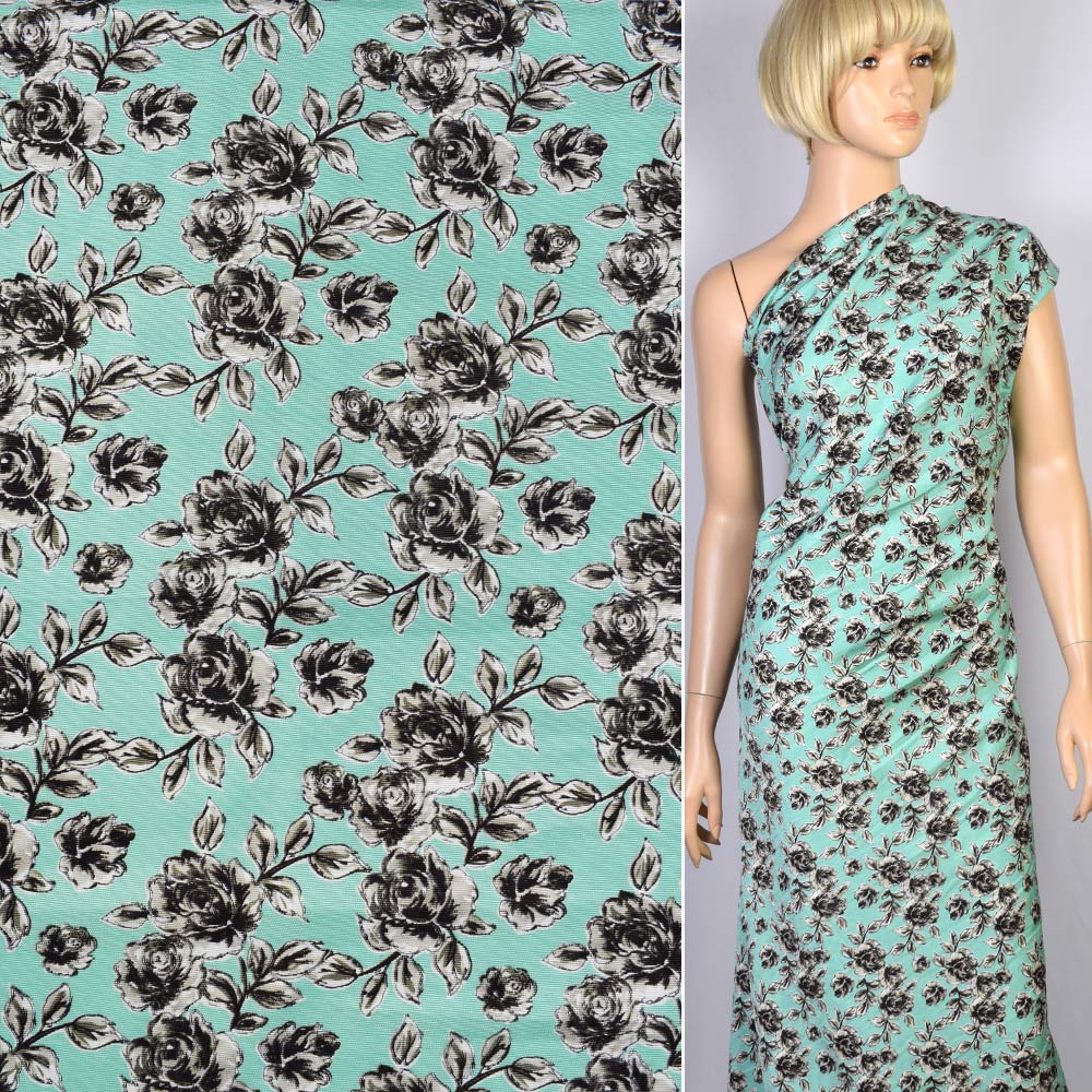 Репс віскозний м'ятний в чорно-білі троянди ш.150 купить в розницу и оптом