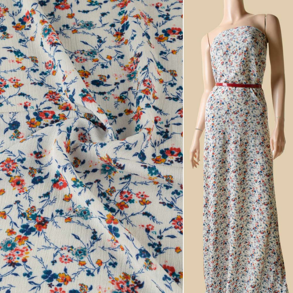 Віскоза жата молочна, помаранчеві, сині квіти, ш.140 купить в розницу и оптом